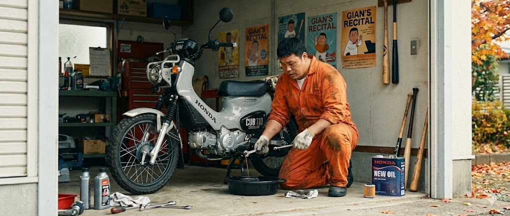火曜定休日。時給2000円オーバー!今日はバイクのオイル交換をやってもらいました。過去2週間の燃費は57km/lでした。