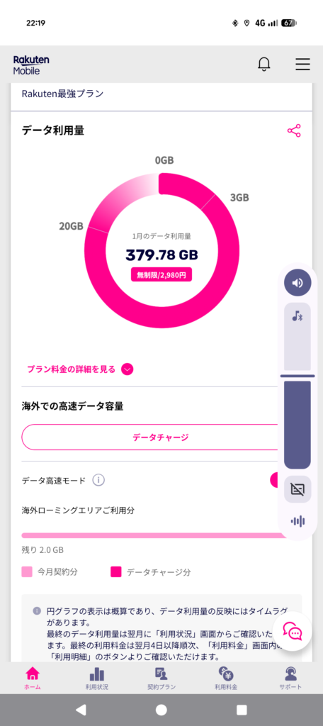 01月の通信量は379GB、通信料は3282円でした。